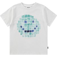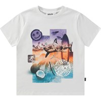 White organic cotton T-shirt with short sleeves and ribbed neckline. The T-shirt has a loose fit and a front print of the surfing universe.