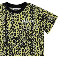 Rame is a t-shirt in a black and yellow leopard pattern with the text 'Wild world' on one side of the chest.