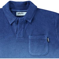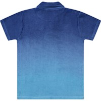 Dark blue and light blue T-shirt in organic cotton terry with short sleeves and a collar. The T-shirt has a loose fit, chest pocket, and side slits. Pair the T-shirt with matching shorts for a complete set.