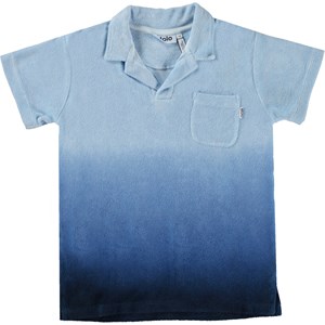 Terry polo shirt in 100% organic cotton in a dip-dye effect in shades of blue. The shirt is in a loose fit and has short sleeves, a polo collar, a chest pocket and small slits at the sides. The soft terry quality and the loose fit make this shirt ideal to wear at the beach or pool.