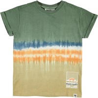 Randon is a tie-dye t-shirt in sand, orange, blue and green with rolled up sleeves. The t-shirt is in 100% cotton.