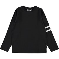 Ras is a black, long sleeve top with white stripes on the left sleeve.