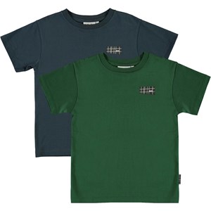 Rasmus is one of Molo's new, basic t-shirts with a logo print on the left side. This is a 2-pack with a dark blue and a green t-shirt.