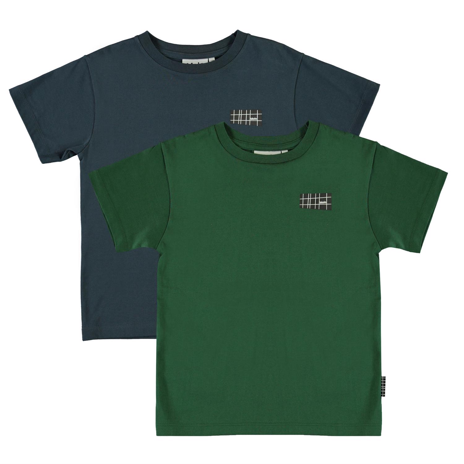 Rasmus is one of Molo's new, basic t-shirts with a logo print on the left side. This is a 2-pack with a dark blue and a green t-shirt.