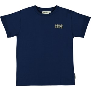 Rasmus is Molo's new basic t-shirt in blue with a logo print on the left side.