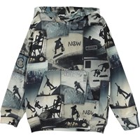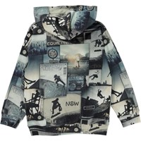 Ratata is a hoodie with a print of skaters around the world and a peace sign. The hoodie has a pouch pocket and rib at the sleeves and bottom.
