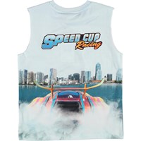 Ray is a wide vest with a print of an electric speedboat, going at top speed, with the text ”Speed Cup Racing”. 'Off Shore' is printed on the back. It is in 100% cotton.