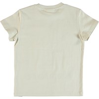 Raymont is a cotton t-shirt in an off white colour with many messages in different colours. The text is printed and embroidered.