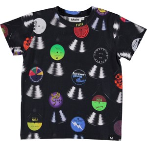 Raymont is a black t-shirt with a print of various LP records with Molo's statements. Raymont is 100% cotton and has short sleeves.