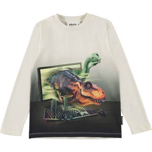 The past and the present meet on Reif, the long sleeve t-shirt that shows dinosaurs that are on their way out of the game and through your computer screen. The "Hello Dino" print is on the front, while the sleeves, back and neck are in white.