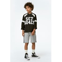 Set Goals' is written in numbers on the front of the Reimar top. It has an oversized fit and a true sporty feel. Reimar also has white net details on both the front and back.