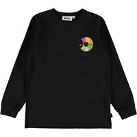 Rez is a long sleeve black top with a small record print on the left chest.