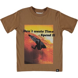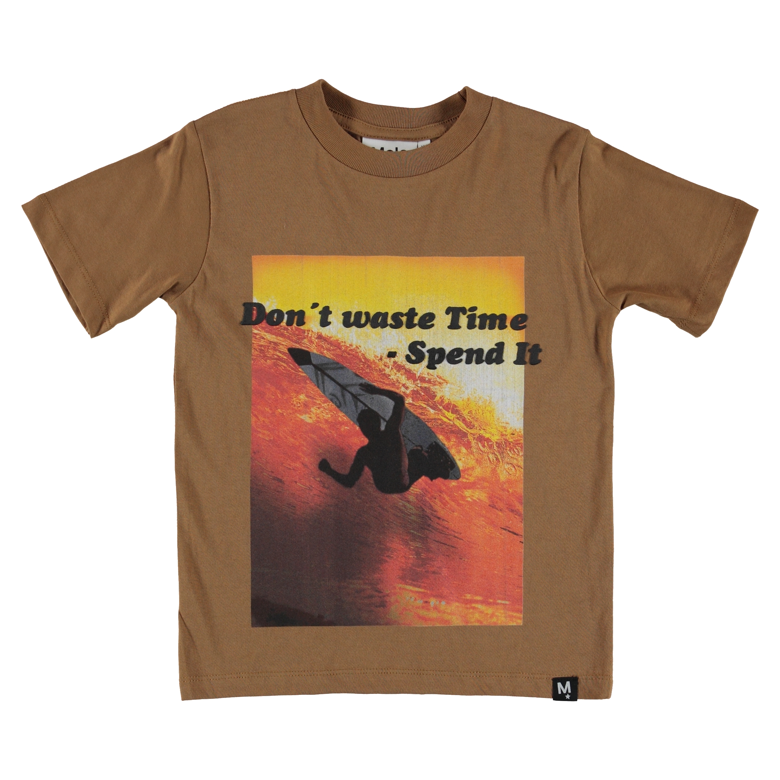 Rezin is a cotton t-shirt with a "Sunset Surf" print on the front and a rubber printed text, which gives it a 3D effect.