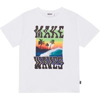 T-shirt with a tie-dye print that's constructed in 100% organic cotton. The print is a classic tie-dye print in cool colours on a black background. The colours range from grey to turquoise, purple and to dark blue. There is a small placement print on the chest, in white, with the words "On Fire". The t-shirt has a round neck with a rib edge and is in a loose fit. Molo's tie-dye print is unique and made by hand, so the print may vary from style to style.