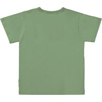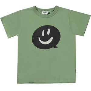 Green t-shirt with a front print of a black speech bubble with a happy smiley face in it. This t-shirt is constructed in 100% cotton, has short sleeves, a round neck with rib and is in a loose fit.