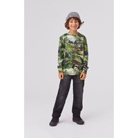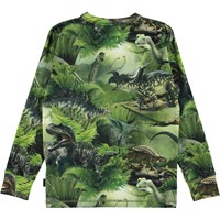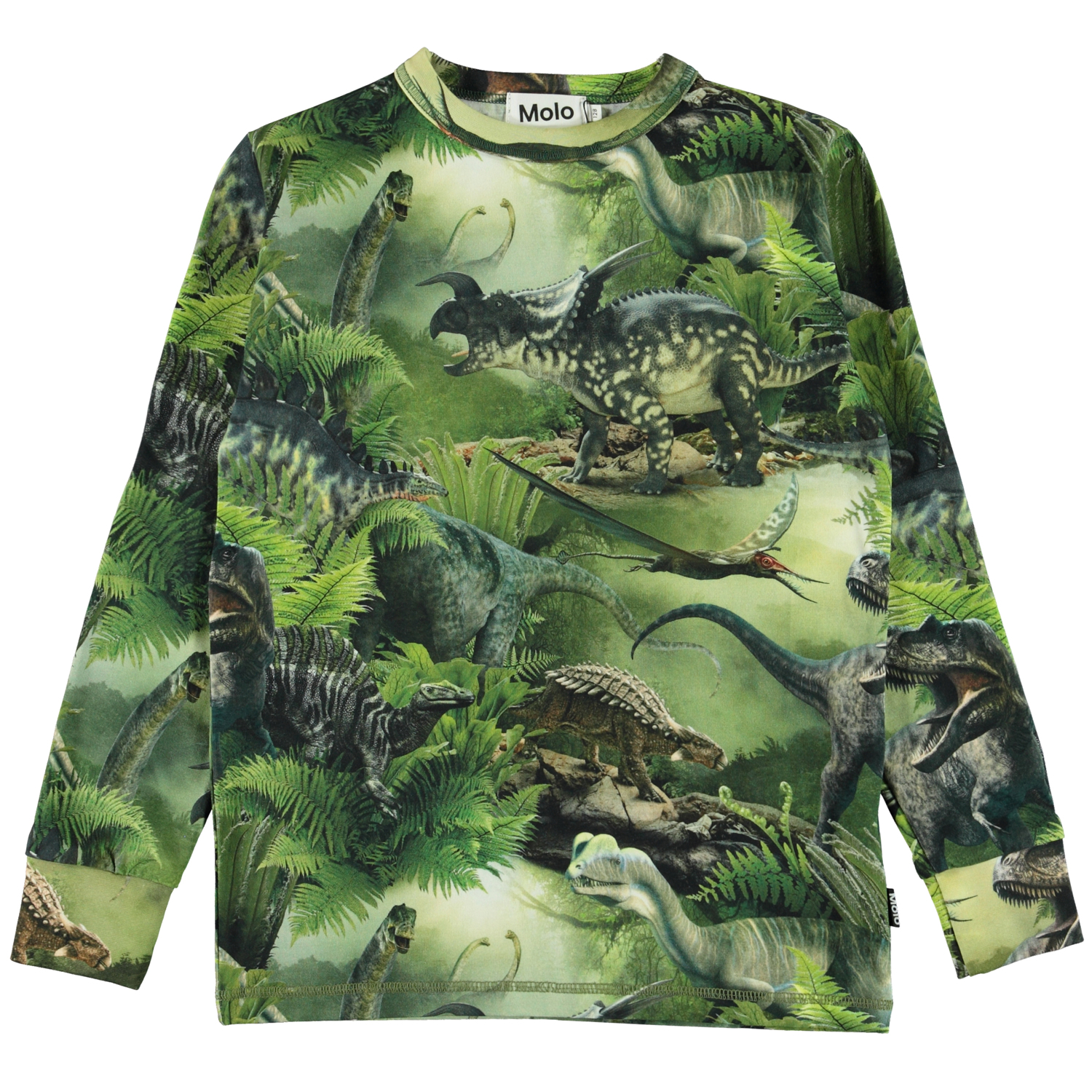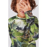 Rill is a long sleeve green top with a print of various dinosaurs.