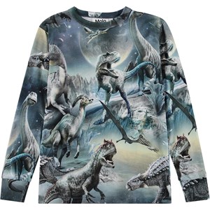 Top in shades of blue made of organic cotton with long sleeves, ribbed cuffs, and ribbed neckline. The top has a regular fit and an all-over print depicting a multitude of dinosaurs living on their very own planet.