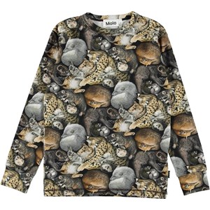 Rill is a long sleeve top with a print of many different animals that are hibernating together.