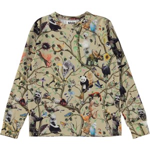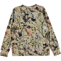 Beige, long sleeve t-shirt in an all over animal print. The print is of the world's animals in the Tree of Life. It tells the story of how all the world's creatures are linked together. Just like the tree's root system, mushrooms and birds, like trees and bears, large and small, are all interconnected, and we all need to look out for one another. This t-shirt is in 100% organic cotton and has a round neck with a rib edge and rib at the sleeves. It is in a regular fit.