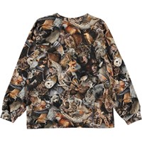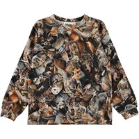 Rin is a long sleeve top with a print of various forest animals in shades of brown.