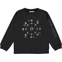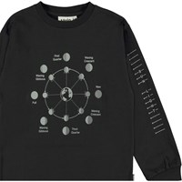Rin is a black long sleeve t-shirt with a print of the phases of the moon on the front and print on one sleeve. The print is reflective, which lights up beautifully in the dark.