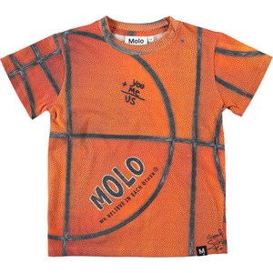 Road is a cotton t-shirt with the "Basket Structure" print, which is a cool, orange print with small texts.