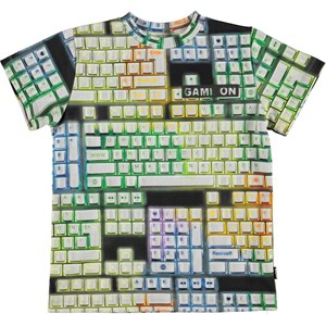 Tetris is being played, with parts of gamer keyboards, on the Road t-shirt in the "Game On" print.