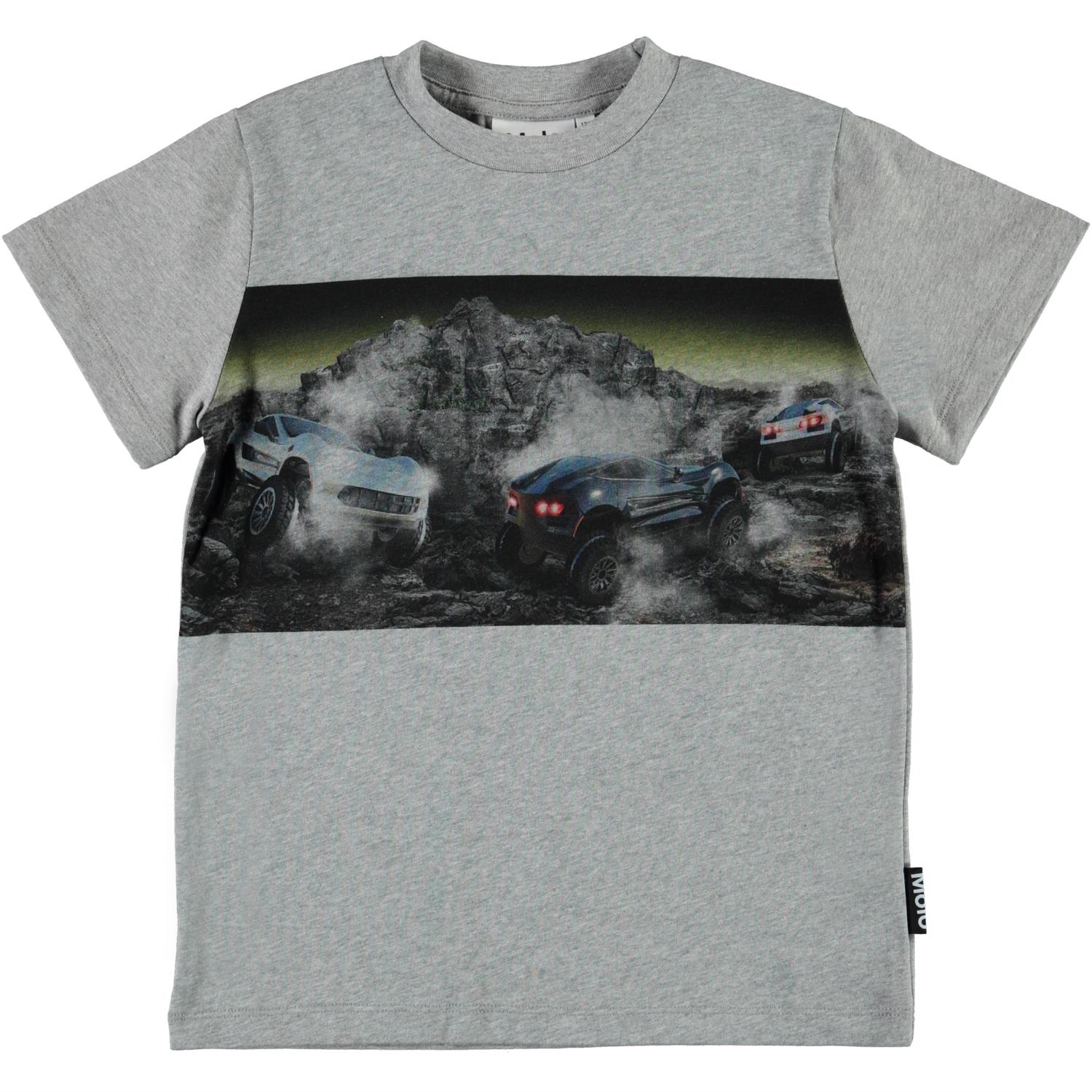 Road is a grey t-shirt with a print of off-road cars on the front.