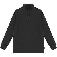 Black top in organic cotton jersey with high neck, zip, long sleeves, and regular fit.