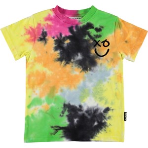 Roxo is a multi-coloured t-shirt, where the colours look like they have been sprayed on. Roxo has short sleeves and a round neck.