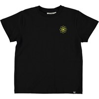 Roxo is a black t-shirt with a little yellow figure on the left chest. The t-shirt is in 100% cotton and has short sleeves.