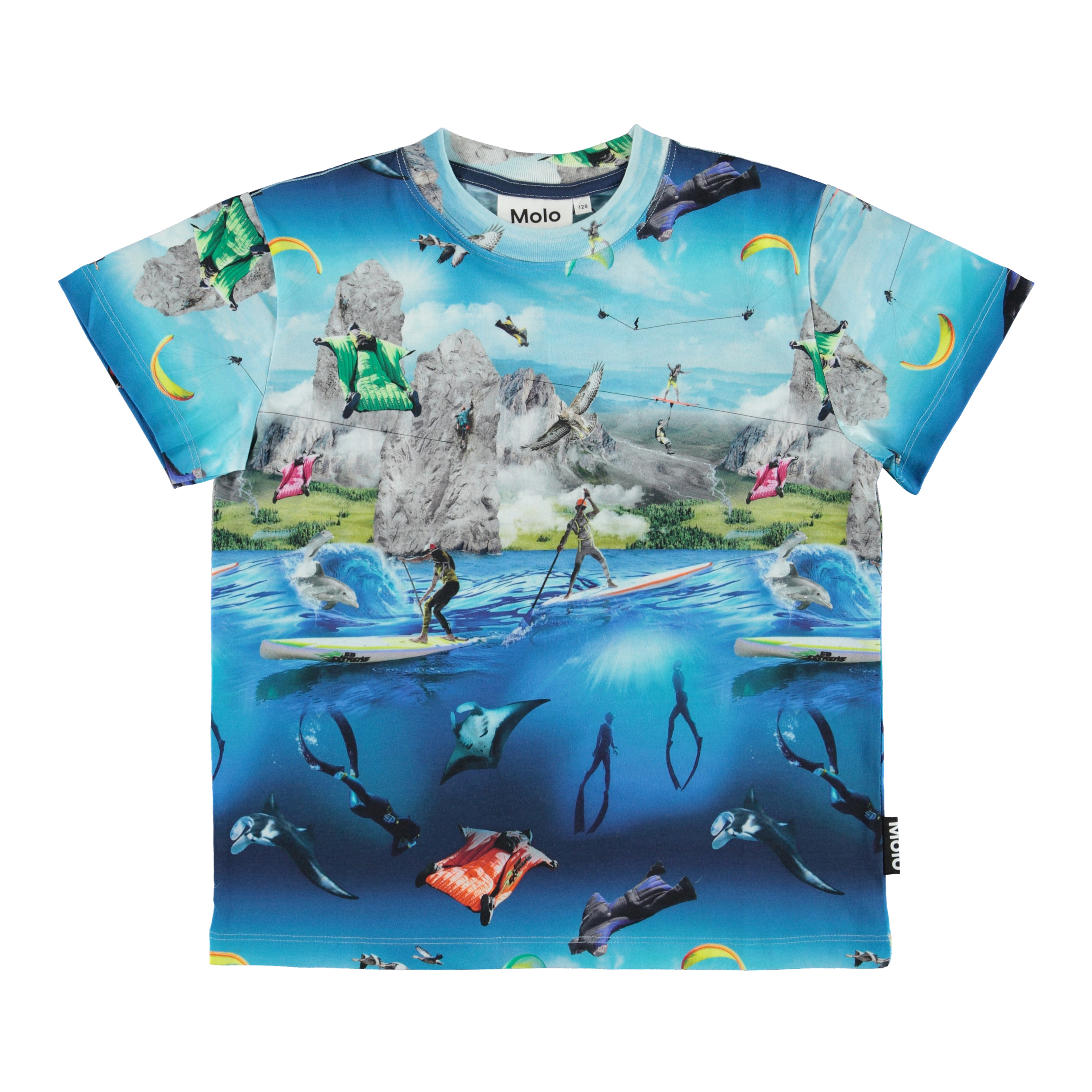 Roxo is a cool t-shirt with a print of various extreme sports athletes doing skydiving, climbing and freediving. The T-shirt is part of Molo’s collaboration with Kunsthal Aarhus for the exhibition Go Extreme..