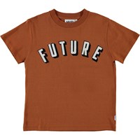 Roxo is a brown t-shirt with the text 'Future' on the front.