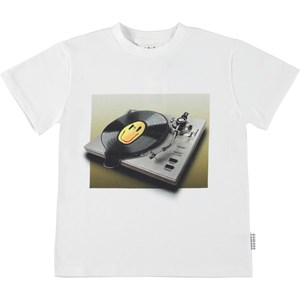 Roxo is a white t-shirt with a record player print on the chest. The LP on the record player is so warm that it's starting to melt.