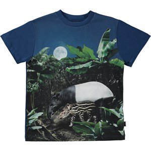 Roxo is a dark blue t-shirt with a print of tapirs in the light of a full moon.