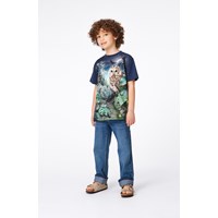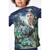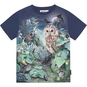 Grey blue t-shirt in 100% organic cotton with a placement print on the front. The print invites you to explore the garden at night time. Some of the flowers have closed for the night, and other flowers are blooming in the dark, to the delight of the nocturnal insects. How many animals can you spot? Did you know that the wilder, more natural your garden is, the more it helps biodiversity? The wilder the garden, the more inviting it is for different animals and plants. Roxo has a round neck with an edge tape and is in a regular fit.