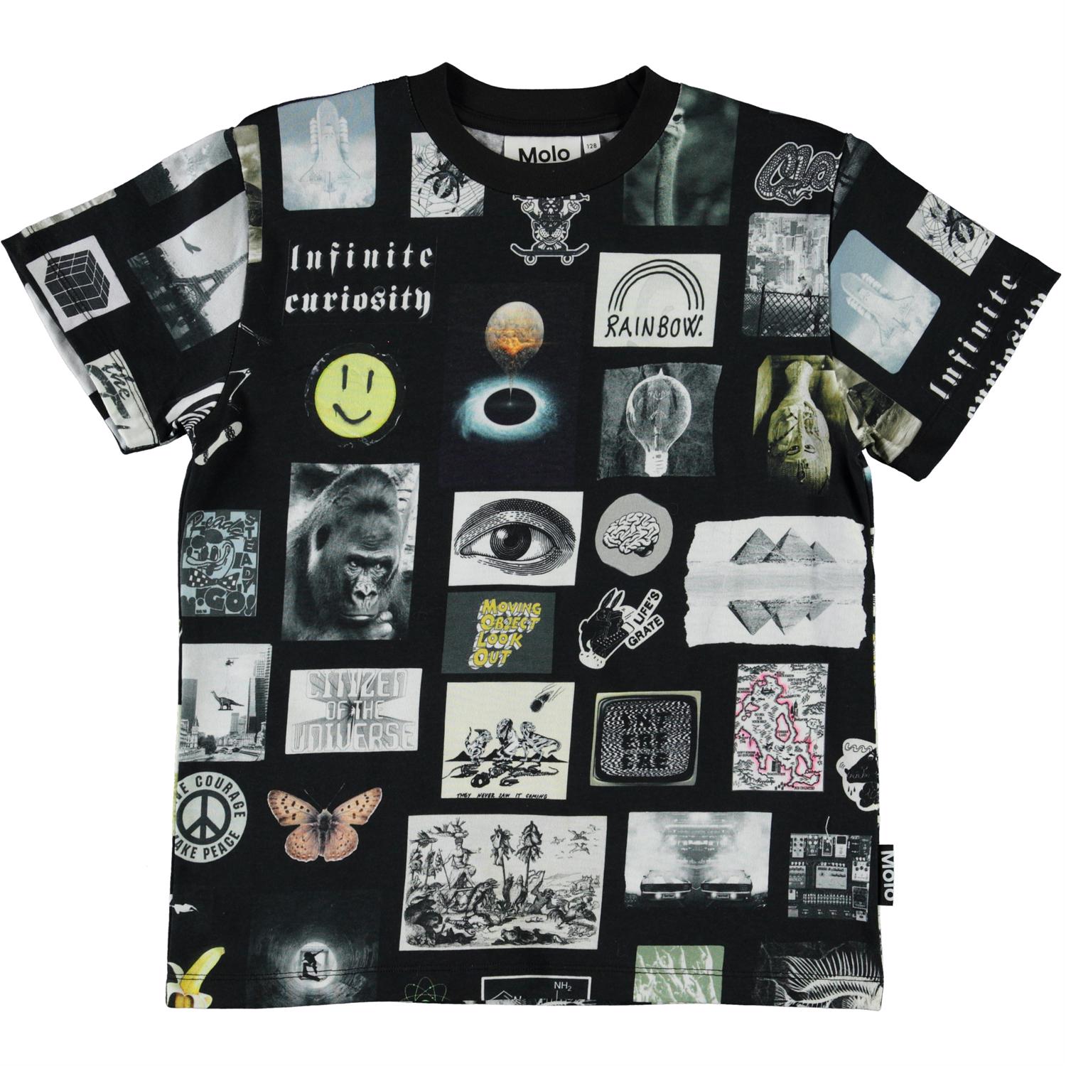 Roxo is a black t-shirt with the 'Scrapbook' print, that shows Molo has been digging through archives and found some wonderful old prints that make up this t-shirt.