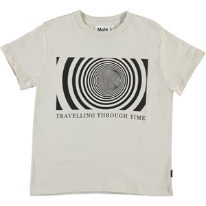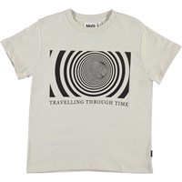 Roxo is a white t-shirt with a print and the text 'Travelling through time' on the front.