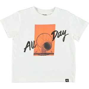 Play hoops all day long in Roxo, a white cotton t-shirt, with a placement print on the front.