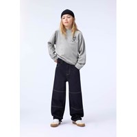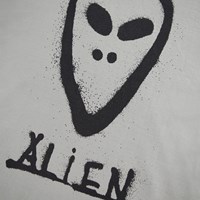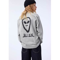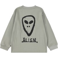 Khaki-coloured long-sleeved top made of organic cotton with ribbed neckline and sleeves. The long-sleeved top has a loose fit and a graffiti-painted alien face on both the front and back.