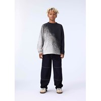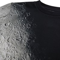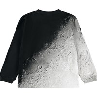 Black, grey, and beige long-sleeved top made of organic cotton with ribbed neckline and sleeves. The long-sleeved top has a loose fit with a print of the moon''s raw texture.
