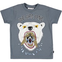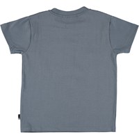 Dusty blue 'Holiday' t-shirt with short sleeves, animal head appliqués and embroidered details.