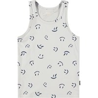 2-pack of tank tops in soft organic cotton. The pack includes a dark blue tank top and a white one with an all-over print of smiling faces.