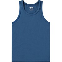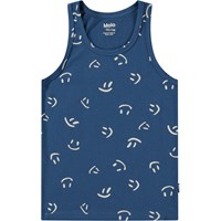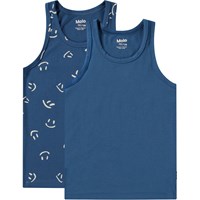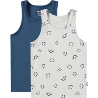2-pack of tank tops in soft organic cotton. The pack includes one blue undershirt and one with an all-over print of smiling faces.