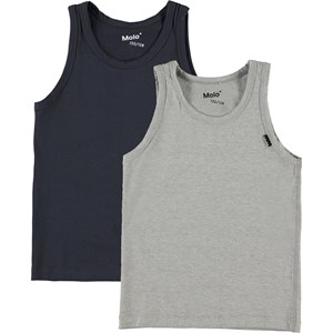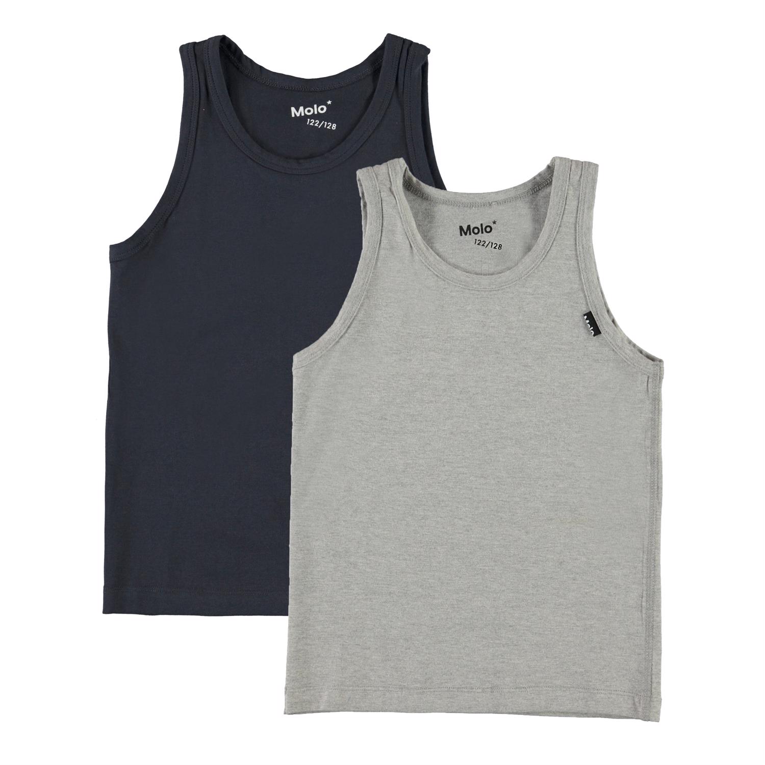 Pack with two cotton vests- one in grey and one in blue.