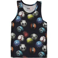 Pack of two cotton vests. One is in blue while the other is in a print of footballs.
