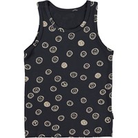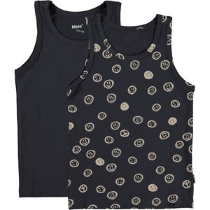 2-pack of our popular Jayden vests. This version has one black and one in an all over print. The print is in beige and shows a lot of small smiley faces and peace signs. The vests are constructed in 100% soft cotton jersey. You can use this 2-pack of vests with our Justin 2-pack, which are matching boxer shorts