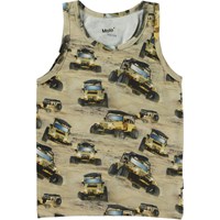Pack of two vests in organic cotton. One is in black and the other is in a print of a jeep in the desert.