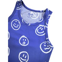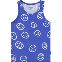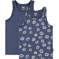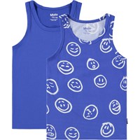2-pack of tank tops with wide straps and round neck made of soft organic cotton. The pack includes one blue and one with a print of smiling faces. Combine it with the matching boxer shorts for a complete set.