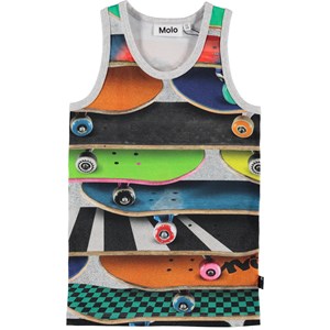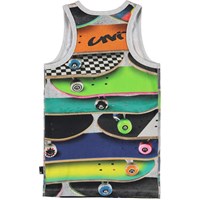 Jim is a vest in the 'Skateboards' print, which is filled with many colourful skateboards.